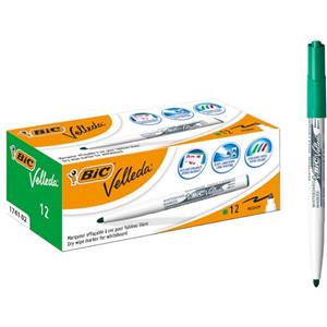 BIC Velleda 1741 Pennarelli per Lavagna Bianca Verde - Confezione da 12 con Punta Tonda Media (1,4 mm)