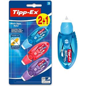 BIC Tipp-Ex Micro-Tape Twist - Correttore a Nastro Ultra-Compatto 2 1 Unità, 8 Metri di Copertura, Colori Assortiti