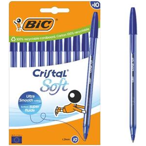 BIC Cristal Soft - Penna a sfera blu a punta media (1,2 mm) con inchiostro Easy Glide, confezione da 10 pz