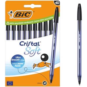 BIC Cristal Soft Penna a Sfera Nero con Punta Media (1,2 mm) e Inchiostro Softline - Confezione da 10