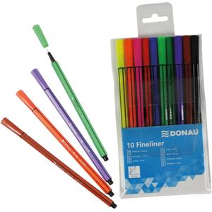 Donau Set Fineliner 10 pz - Inchiostro a base acqua, Punta 0,4 mm, Colori Assortiti