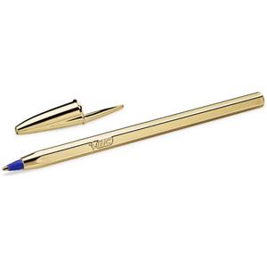 BIC Penna a sfera Cristal Shine Gold 1 mm blu - Fusto oro, inchiostro blu, punta media