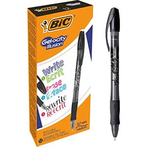 BIC Gel-ocity Illusion Penna Gel Cancellabile 0,7 mm Nero - Scatola da 12 Pezzi con Grip in Gomma