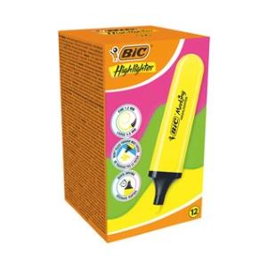 BIC Evidenziatore Flat Highlighter Giallo Neon - Punta A Scalpello 1,2mm-4,6mm - Confezione da 12 Pezzi