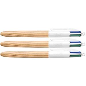 BIC Penna a sfera a scatto 4 Colours Wood Effect - Nero, Blu, Rosso, Verde - Punta 1 mm in Scuola e Cancelleria