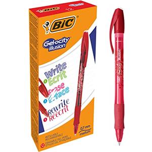 BIC Illusion - Penna a sfera gel cancellabile 0,7 mm rossa, confezione da 12 pezzi in Scuola e Cancelleria