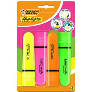 BIC Set di 4 Evidenziatori Flat Fluorescenti con Punta a Scalpello e Inchiostro Ad Asciugatura Rapida