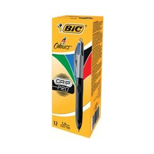 BIC Penna a sfera a scatto 4 Colours Grip Pro - 1,0 mm - Nero, Blu, Verde, Rosso - Confezione da 12 pz