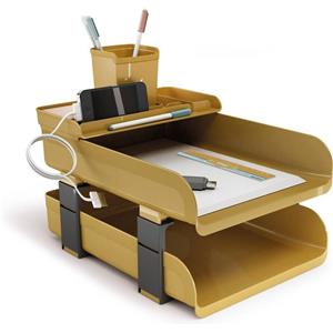 ARDA Set scrivania Vintage Caramel 5 pezzi - Colore ocra - 2 portacorrispondenza, 1 bacinella, 1 portapenne, 1 righello 16 cm