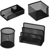 LEBEZ Set Scrivania in Rete Metallica Nero - 4 Accessori: Sparticarte, Cubo Portamemo, Portapenne e Portafermagli