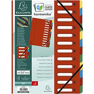 Exacompta 55125E Harmonika Classificatore a soffietto Rosso con 12 scomparti e copertina in cartoncino
