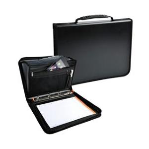 Exacompta 55634E Conferenziere Portablocco Congressi A4 Nero in Polipropilene con 4 Anelli da 30 mm, Maniglia e Chiusura a Zip