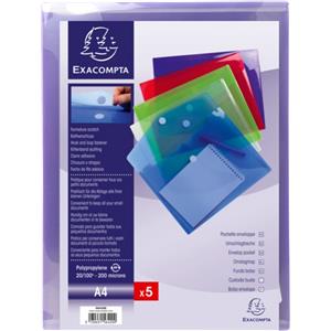 Exacompta Buste A4 con Chiusura in Velcro - Confezione da 5 Colori Assortiti, 24x32 cm