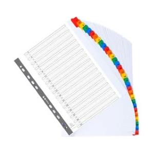 Favorit 400132466 Divisori Alfabetici A-Z in Polipropilene 120my con 20 Tacche Colorate, Formato A4, Foratura Universale e Frontespizio Scrivibile