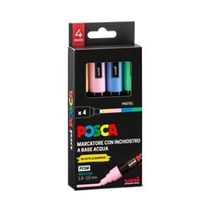 Uni Posca Marcatore a Tempera Pastello 4pz - Punta Tonda 1,8-2,5 mm, Inchiostro Pigmentato, Resistente e Atossico