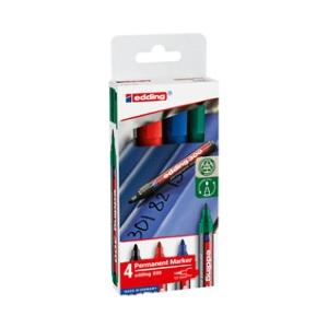 Edding Marcatore Permanente con Punta Conica - Astuccio da 4 Colori Assortiti, 1.5-3 mm, Resistente a Luce e Acqua