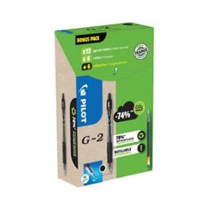 Pilot G-2 Penne Gel a Scatto 0,7 mm Nero - Green Pack 12 Penne 12 Ricariche (6 Omaggio)