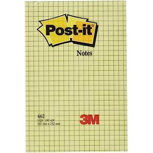 Post-It Large Note 662 Giallo Canary - 102x152 mm - 100 Fogli a Quadretti (Conf. 6)