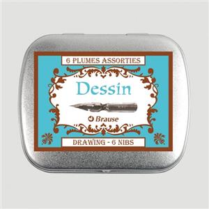 Brause Set di Pennini Assortiti per Disegno - 6 Pennini in Metallo con Scatoletta Edizione Speciale