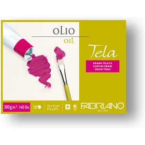 Fabriano Blocco Carta per Pittura a Olio TELA 300 g - 10 Fogli 24x32 cm, Collato su Quattro Lati