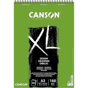 Canson XL Drawing Album Spiralato Lato Corto A3 - 160 gr - 50 Fogli - Carta da Disegno Bianco Naturale