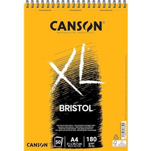 Canson XL Bristol Blocco Spiralato A4 - 180 g/m² - 50 Fogli - Carta Extra Liscia e Resistente per Arti Grafiche