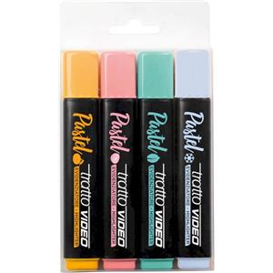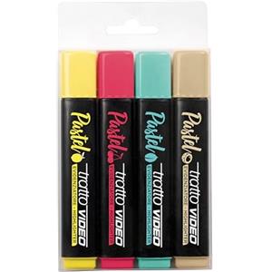 Tratto Video Pastel F835801 - Set di 4 evidenziatori pastello con punta a scalpello in astuccio appendibile