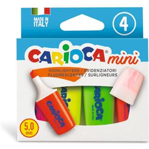 Carioca Mini Evidenziatori Fluo - Confezione da 4 Colori Assortiti, Inchiostro Lavabile e Punta Smussata