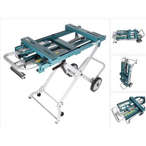 Makita WST05 - Banchetto per Sega Professionale in Acciaio, Altezza Regolabile, 4 Gambe, 2 Ruote, Blu e Grigio, Larghezza 500 mm, Lunghezza 117 cm