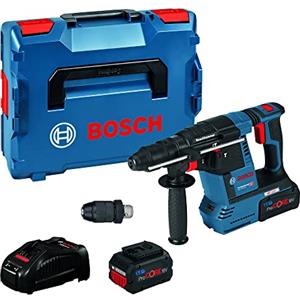 Bosch Professional 18V System Martello perfor.a batt. GBH 18 V-26 F (incl. 2 batt. 5.0Ah, caricab. rap. GAL 1880 CV, asta prof. 210mm, panno, impugn.suppl., mandr.autoserrante, L-BOXX)