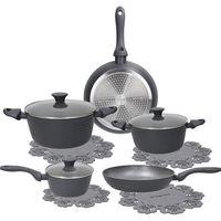 FIVE Batteria da Cucina in Alluminio Pressato con Utensile Rimovibile - 2 Padelle, Casseruola e 3 Coperture