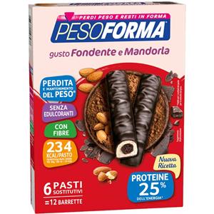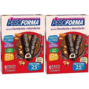 Pesoforma Barrette Cioccolato Fondente e Cuore di Mandorla, Pasto sostitutivo per il controllo del peso, Barrette proteiche, Barrette per restare in forma, Solo 234 calorie, 12x31g (Confezione da 2)