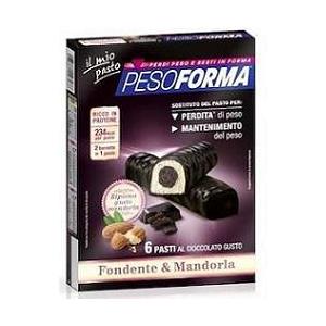 NUTRITION & SANTE' ITALIA SpA Pesoforma Barrette Al Cioccolato Fondente e Mandorla - 6 Pasti sostitutivi per perdita e mantenimento del peso corporeo - 12 barrette