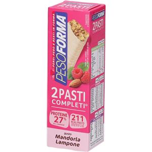 Pesoforma Barrette Proteiche Mandorla e Lampone - Pasto Sostitutivo con Vitamine e Magnesio - Pack da 2 Barrette