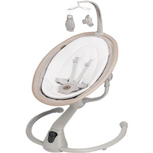 Maxi-Cosi Cassia Sdraietta Neonati Elettrica per bambini 0-6 mesi, max 9 kg, Altalena Neonato Girevole 360°, Reclinabile, rilevamento automatico movimento, 5 velocità, 12 Melodie, Classic Beige