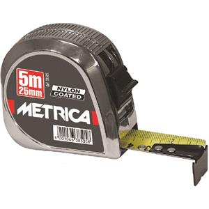 Metrica Flessometro Professionale 5m x 25mm con Cassa Cromata e Nastro Nylon Antiabrasione