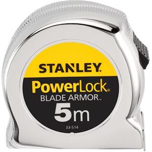 STANLEY Flessometro Powerlock 5m - Cassa Cromata, Nastro Maggiorato e Antiscivolo