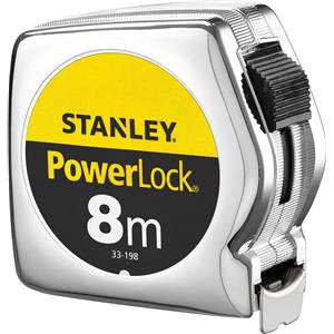 Stanley Flessometro Powerlock 0-33-198 - 8 m x 25 mm, Cassa in materiale sintetico, Nastro in acciaio rivestito in Mylar