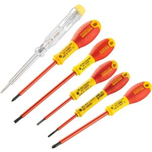 STANLEY FatMax 0-65-443 - Set di 6 Cacciaviti Isolati 1000V con Lama in Acciaio, Impugnatura Morbida e Antiscivolo, Multicolore