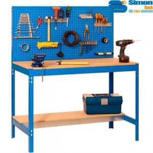 Simon Rack Banco da Lavoro BT2 - Capacità di Carico 650 kg, Dimensioni 1445x1210x610 mm, Pannello Forato e 2 Ripiani in Legno