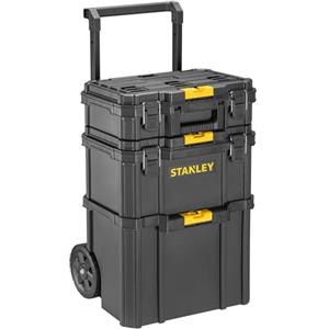 STANLEY STST83319-1 Set Mobile 3 in 1 - Cassetta Portautensili Compatta, Profonda e da Cantiere, Portata 45 kg, Capacità 80 litri, Ruote Gommate da 18 cm, Manico Telescopico