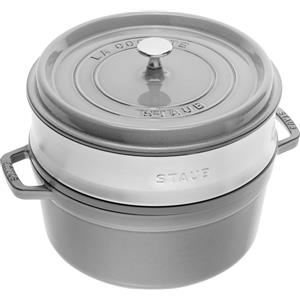 Staub Cocotte Rotonda in Ghisa con Cestello a Vapore - Grigio Grafite
