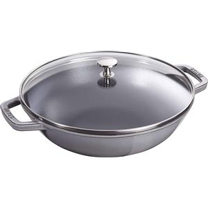 Staub Wok in Ghisa 30 cm - Versatile per Scottare, Brasare e Cuocere al Vapore