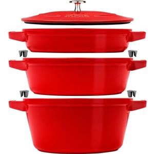 STAUB Set di 3 Pentole Impilabili in Ghisa, Colore Ciliegia - Casseruola, Tegame e Padella