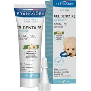 FRANCODEX Gel dentale lenitivo per cuccioli 50 g - Allevia il dolore alle gengive con olio di garofano e camomilla