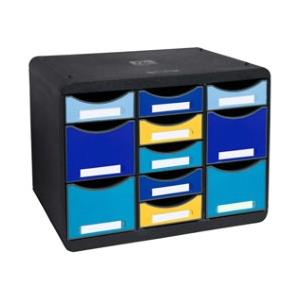 Exacompta Cassettiera Store-Box Multi Bee Blue - 11 cassetti - Plastica Nero/Multicolore - Dimensioni 270x355x271mm