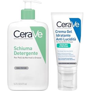 CeraVe Schiuma Detergente 473ml + Crema Gel Idratante Anti-Lucidità 52ml | Pelle Grassa e Mista