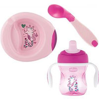 Béaba Set Pasti per Bambini in Silicone - 3 Pezzi: Piatto Diviso, Tazza e Cucchiaio, Lavabile in Lavastoviglie e Adatto a Microonde, Rosa