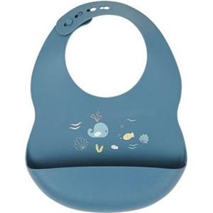 Nattou Bavaglino in Silicone Blu con Tasca, Motivo Mare, Regolabile e Senza BPA