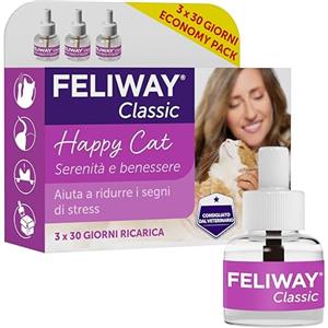 FELIWAY Classic 3x30 Giorni di Ricariche Calmanti per Diffusore di Feromoni, Confezione da 3x48 ml - Aiuta a risolvere i segni comuni di stress nei gatti e gattini, Raccomandato dai Veterinari